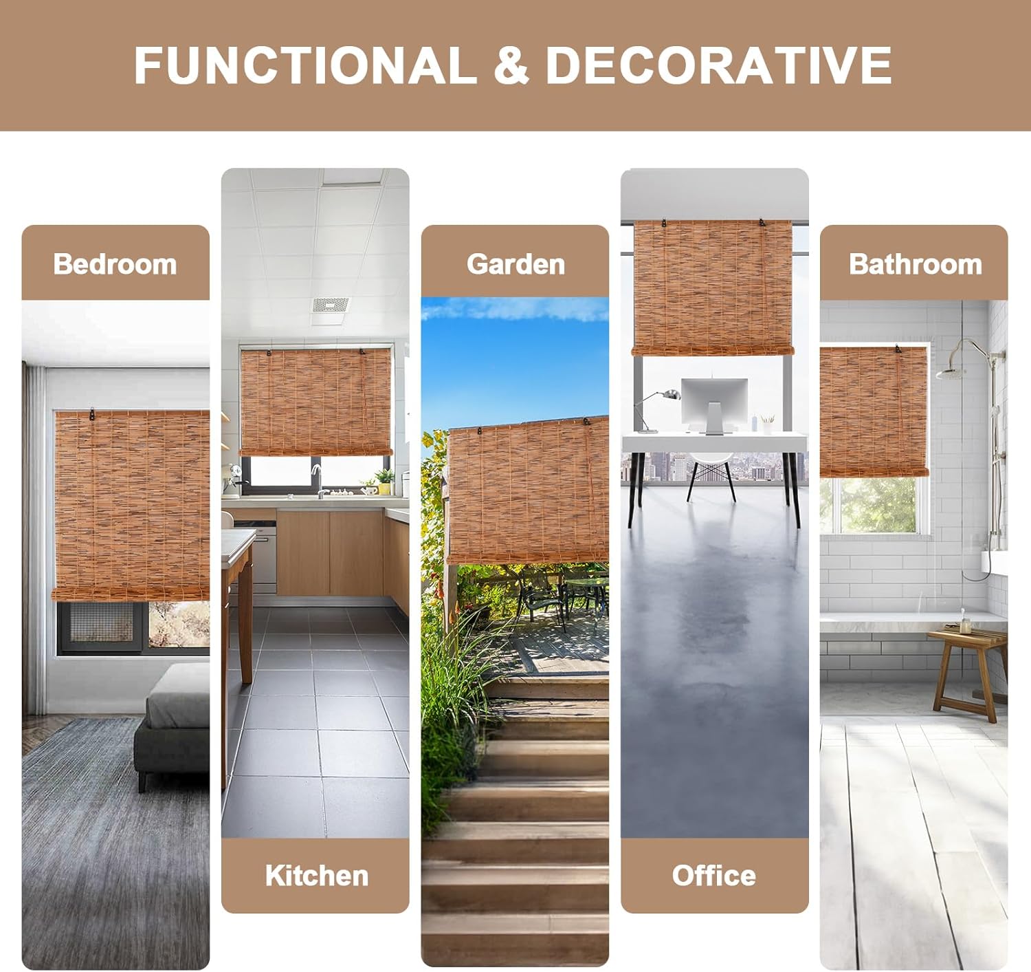 🌾 Hochwertige Materialien – Unsere handgefertigten Rollos bestehen aus natürlichem Schilfrohr, welches hitzebeständig und schimmelresistent ist – ideal für moderne Haushalte.